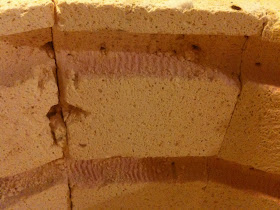 4. Installer les nouvelles résistances à l’intérieur du four: Mon four n’est pas tout neuf... j’ai du faire attention à ne pas abimer les briques, mais si non, ce n’est pas trop difficile d’insérer les nouvelles résistances dans les cannelures. Il faut juste faire attention a mettre la bonne résistance au bon endroit. C’est à dire, ce qui recoivent la charge électrique la plus importante en haut et en bas, avec une plus faible charge pour la résistance centrale.