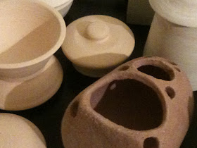 Other such objects have been hanging around my table gathering dust. Pretty things with absurd drips. Victims of the ugly rough glaze I just can't quite give up on: In one out of 5 objects, it produces something volcanicly lovely.