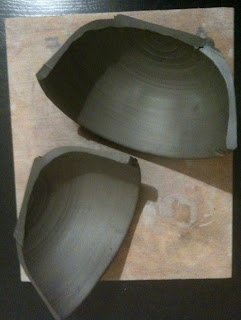 Que faire donc? Le couper en deux, bien sûr. Ça permet de vérifier l’épaisseur de la paroi afin de vérifier si elle est bien égale partout. Ici on voit des petites inégalités quand on regarde de près. (On voit surtout qu’il s’est déformé quand il a atterri de son décollage de la girelle!)