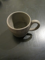 Regardez! Une petite tasse, toute mignonne. Mon élève, perfectionniste, aurais voulu une tasse d'une taille plus standard. La prochaine fois je lui fait tourner 500 ou 600 grammes... challenge!