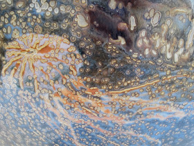 J'étais au courant de l'expo parce que je suis sur le mailing liste de François Debien, de la Poterie de la Genevraye. Si vous vous rappellez de mon article sur le Festival dans le 11e, vous savez que j'ai espéré gagner une pièce de François Debien dans le tirage au sort. Je n'ai pas eu cette chance, alors je me contente d'aller regarder ses œuvres dans les expos. Ses émaillages me coupent le souffle !