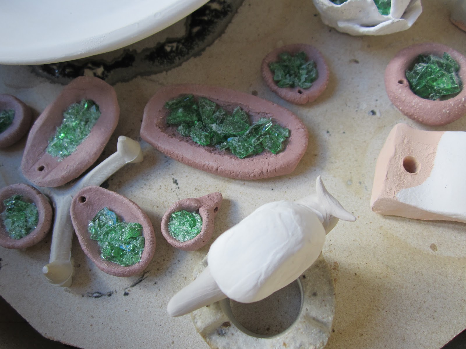 Je ne sais pas si A. va continuer à jouer avec le verre. Je ne me suis pas lancée dedans moi même car j'ai toujours eu l'impression qu'il y avait d'autres techniques à maîtriser avant de passer au verre. Finalement, c'est vraiment très facile à utiliser, et le résultat est très agréable. J'ai l'impression que A. s'est lancé dedans surtout pour m'en montrer la simplicité et pour m'encourager à l'utiliser. Ce qui a marché : dans la cuisson suivante j'ai rajouté de la fritte au fond d'une de mes petites boites, et je suis très contente du résultat !
