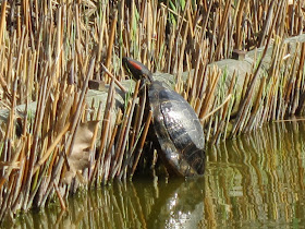 Perplexe, la tortue terrestre resta muette un moment et réfléchit à ce que pouvait bien vouloir dire sa cousine dans le ciel. Son regard se porta sur la surface calme et plate de l'étang reflétant parfaitement le ciel au-dessus d'elle, et elle senti le poids de l'eau dans sa carapace. Elle comprit comment cela pouvait paraitre vu de dessus, eut un petit sourire et répondit à sa cousine : "C'est un secret ! Au revoir, cousine." Puis elle disparut dans les hautes herbes.