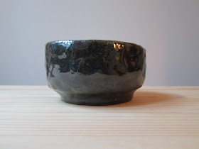 La semaine dernière j'ai fait deux cuissons. La première était réservée aux pièces recouvertes d'Oribe, un des émaux que A.I. m'a ramené du Japon (plus d'infos dans ce billet). Afin d'éviter la formation des bulles dans cet émail, j'ai fait monter la température du four à seulement 1220°C. Voici quelques objets issus de cette cuisson !