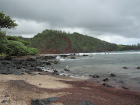 En parlant de route : sur chaque île, les montagnes sont encerclées d'une route principale. Sur Kauaï, comme il n'y a qu'une seule montagne, il n'y a qu'une seule route. Sur la côté ouest, la face de la montagne est trop raide et la route s'arrête tout simplement. Sur Mauï la route entoure bien chaque montagne, mais il y a des endroits sans goudron et peu fréquentés. Le genre d'endroit qu'on aime bien.