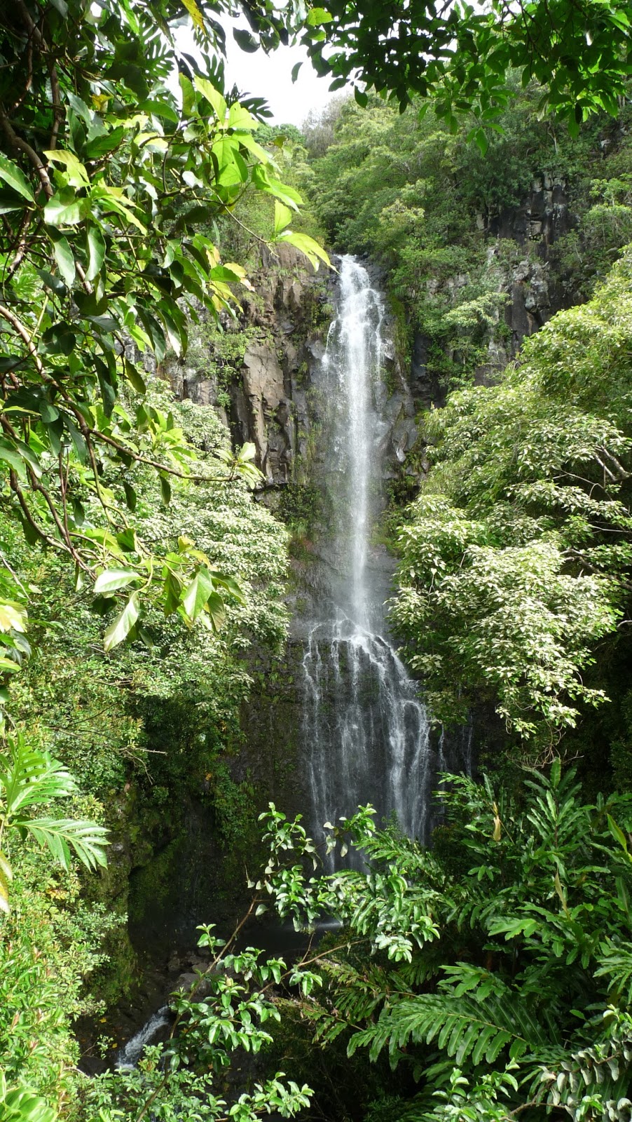 En parlant de route : sur chaque île, les montagnes sont encerclées d'une route principale. Sur Kauaï, comme il n'y a qu'une seule montagne, il n'y a qu'une seule route. Sur la côté ouest, la face de la montagne est trop raide et la route s'arrête tout simplement. Sur Mauï la route entoure bien chaque montagne, mais il y a des endroits sans goudron et peu fréquentés. Le genre d'endroit qu'on aime bien.