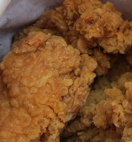 Le soir, A. a fini ce qu'il restait du poulet (à la base, les yeux plus grands que l'estomac, il avait commandé 12 morceaux) et il a observé que le Tasty Chicken avait développé un goût désagréable tandis que le KFC n'avait pas changé. Il a conclu que rien ne vaux un poulet de qualité tourné à la broche (A: ou du poulet frit maison) !