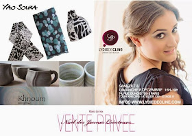 Vous préférez ne pas sortir par ce qu'il fait trop froid et trop gris ? Vous n'habitez pas à Paris ? Ne vous inquiétez pas de rater la vente privée, car vous pouvez toujours commander des poteries sur ma boutique en ligne. Cela dit, l’avantage de la vente privée c'est que les bijoux de Lydie De Cline sont vraiment classes, qu'il y aura des petits gâteaux de Noël, et que samedi Emilie Gastaud nous y offre un récital de harpe.