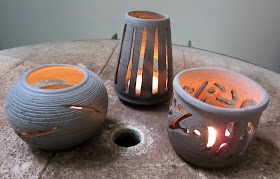 Ce qui me fait penser à vous montrer des objets en cours. A. m'a appris qu'il y a une différence entre luminaires et photophores (si j'ai bien compris, tout photophore est un luminaire mais tout luminaire n'est pas forcement un photophore.) Photophore étant un très joli mot que j'ai envie de dire et d'écrire aussi souvent que possible, j'ai décidé de faire plusieurs petits photophores.