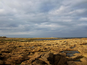 C'est à dire, arrivée à St. Vaast où je sais qu'un vaste parc* d'huîtres est caché par la marée haute et ayant aperçu un bâtiment avec l'enseigne "HUITRES," j'ai pas pu résister à la tentation. Miammm, manger des huîtres, c'est manger la mer.