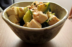 Nous avons pleins de bols dans la cuisine (étonnant, n'est-ce pas ?), les bols que je considère invendables (que A. décrit comme "expérimentaux.") C'est un plaisir de trouver le bol qui correspond à un plat, et l'autre jour j'étais très contente de l'ensemble bol + salade.