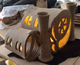 On dit que janvier est la période tranquille parce qu'il n'y a pas trop d’événements autour de la poterie (du moins, à la campagne.) Mais ce n'est pas vrai de tout ! Dès notre retour du marché de Noël de Cherbourg, il fallait rattraper les activités administratives que j'ai un peu négligées pendant tout le mois de décembre. Et surtout, janvier c'est le mois où on doit préparer toutes les inscriptions aux événements auxquels on veut participer au cours de l'année. Aussi, avec la reprise des cours avec les enfants, j'ai décidé de passer un peu de temps sur la fabrication des exemples, afin que les enfants puissent plus facilement suivre mes conseils et se faire une meilleur idée de l'objectif de chaque séance. Bref, tout ça m'a pris du temps.