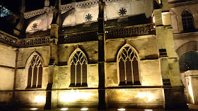 Au fait, j'ai commencé à imaginer la structure du châtophore en décembre quand je me suis arrêtée pour admirer les arc-boutants de l'église à Cherbourg (ci-dessous.) De plus, je venais de terminer la lecture de Les Piliers de la terre, un roman qui tourne autour de la construction d'une église gothique. Tout ça m'a donné envie d'intégrer certains éléments de cette architecture dans le prochain châtophore.