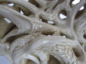 Lors du stage, j'avais apporté un nid d'oiseau à tremper dans la barbotine. Ana-Belén m'a dit que ça serait dommage car on ne verra pas, après trempage, tous les détails qui rendent le nid intéressant. (A force de tremper des trucs dans la porcelaine, on se rend compte que cette remarque est vraie pour plein d'objets.) Elle a dit, ça serait peut-être plus intéressant de s'inspirer du nid.