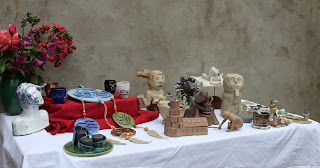 Je me suis amusée à utiliser tous les grès de l'atelier : Grès rouge de Bourgogne, Grès de Treigny, Grès de Saint Amand, et Grès Blanc. Comme je n'avais pas énormément de temps à consacrer au projet, j'ai sculpté plus vite que jamais auparavant et j'étais ravie de voir que tout avait bien tenu à la cuisson, malgré un séchage rapide et des épaisseurs un peu variables.