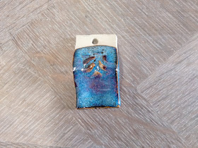 Et non seulement sur ma petite série d'émaux satinés ! J'ai encore des recherches à faire sur le bleu brillant. Déjà il y a trois ans j'étais à la recherche d'un bleu composé d'une couche de rouge de fer suivi d'une couche d'un émail au titane. La superposition me donne un bleu superbe, mais j'ai trop souvent des trous d'épingle ou même des cloques à la cuisson. J'ai essayé plusieurs choses pour régler le problème (attendre plus longtemps entre l'application de chaque couche pour que ça s'imprègne mieux, faire un palier plus long à la fin de la cuisson pour mieux napper, ralentir la monté en température au début afin d'être sûre d'avoir dégazé les pièces...) mais rien n'a marché.