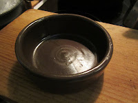 Et, en parlant d'expériences, j'ai pu tester aussi un nouveau émail. C'est l'émail Oribe que A.I. m'a ramené du Japon. Vous vous rappelez peut.être du billet sur le Shigaraki - et bien, en même temps j'ai eu le plaisir de recevoir de la terre Bizen et cet émail Oribe. J'ai enfin tourné des tasses à thé avec le Bizen, et j'ai prévu de les recouvrir d'Oribe. Normalement, je devrais les enrober de paille et les faire enfourner dans un immense four à bois. Mais on n'a toujours pas eu le temps de construire ce four là dans la cour de notre immeuble (imaginez "l’excitation" des voisins lors de la première cuisson...)